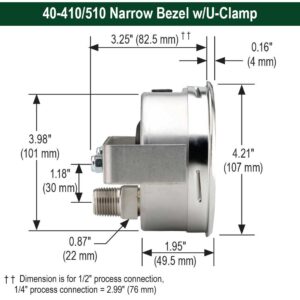 Noshok 40-310-5000-psi-CBU 1/4 NPT Back Conn, 4 Brass Case Gauge, Glycerin Filled, Chrome Bezel w/ U-Clamp