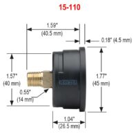 NOSHOK 15-110-15-psi/kPa 1/8 NPT Back Conn 1.5 ABS dry Case Pressure Gauge