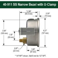 Noshok 40-911-10000-psi/kPa-SSBU 1/4 NPT Back Conn,4 INCH Stainless Steel Case Gauge, Glycerin Filled, SS Bezel w/U-Clamp