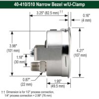 Noshok 40-510-5000-psi-1/4-SSBU 1/4 NPT Back Conn, 4 Stainless Steel Pressure Gauge, Glycerin Filled, SS Bezel w/U-Clamp