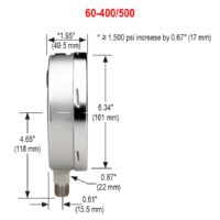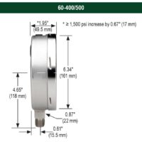 NOSHOK 60-500-5000-psi-GY40 1/2 NPT Bottom Conn, 6 Stainless Steel Gauge, -40 Degree Service Fill