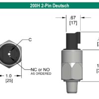 Noshok 200H-3-1-500/2500-46 200H Series Snap Action Switch, Zinc-Nickel Plated Steel Wetted Materials, BUNA-N Diaphragm, 1 SPDT, NO / NC, 1/8″ NPT Male, 500 psig to 2500 psig (9,000 psig), Deutsch Integral 3-Pin (DT04-3P)